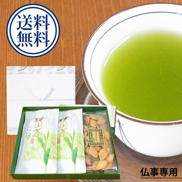「喪中御見舞 菖蒲(あやめ)」 おすすめ茶2袋+米菓詰合せ